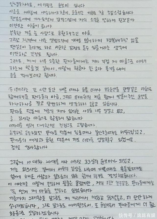 尹普美在手写信中多次强调了对粉丝的歉意,并坦然表达了希望结婚这个选择不会伤害到一直支持她的人的心情。她承诺:“我会像一直以来所做的那样,坚守自己的位置,不失责任心,更加坚定地生活下去。未来也会作为Apink,作为尹普美,以更好的活动回报粉熊们(Apink粉丝名称)”。 Ra.D方面也正式公布了婚讯,其所属公司HIGHUPEntertainment表示:“本公司代表制作人Rado遇到珍贵的缘分,将于明年5月缔结百年佳约”、“Rado在结婚后,也将一如既往地作为HIGHUPEntertainment的代表制作人,专注于音乐活动”、“希望大家为两人的未来送上温暖的祝福”。