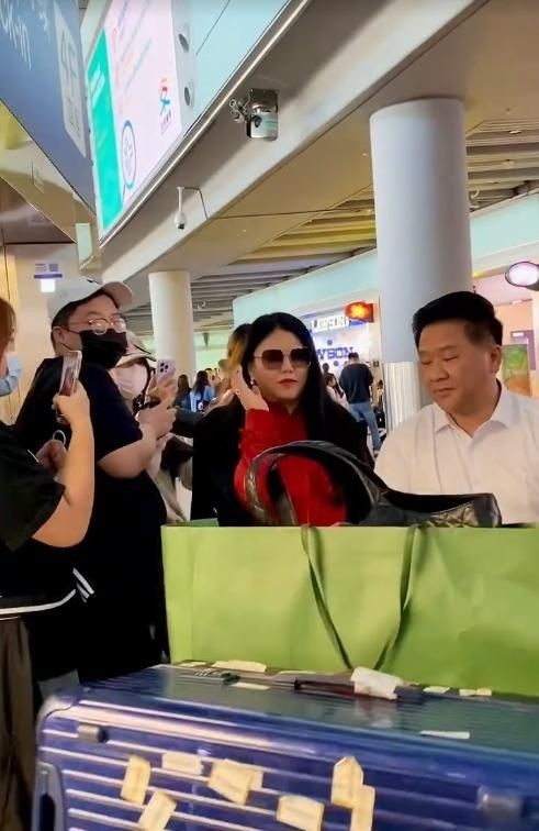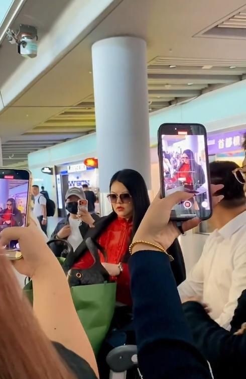 22. 抵达机场后,李湘立刻被大批粉丝团团围住。她低头整理随身物品,全程未抬头回应周围人群,显得有些手忙脚乱。
