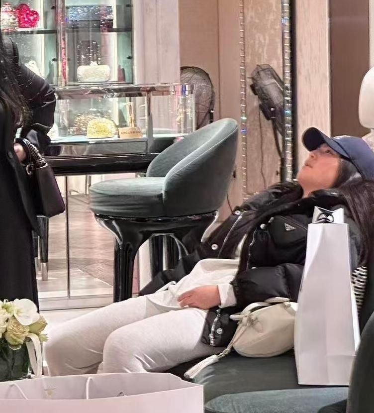 10. 或许因逛街耗费体力,她平躺于沙发之上,双眼凝视天花板,神情略显疲惫,状态稍显慵懒。