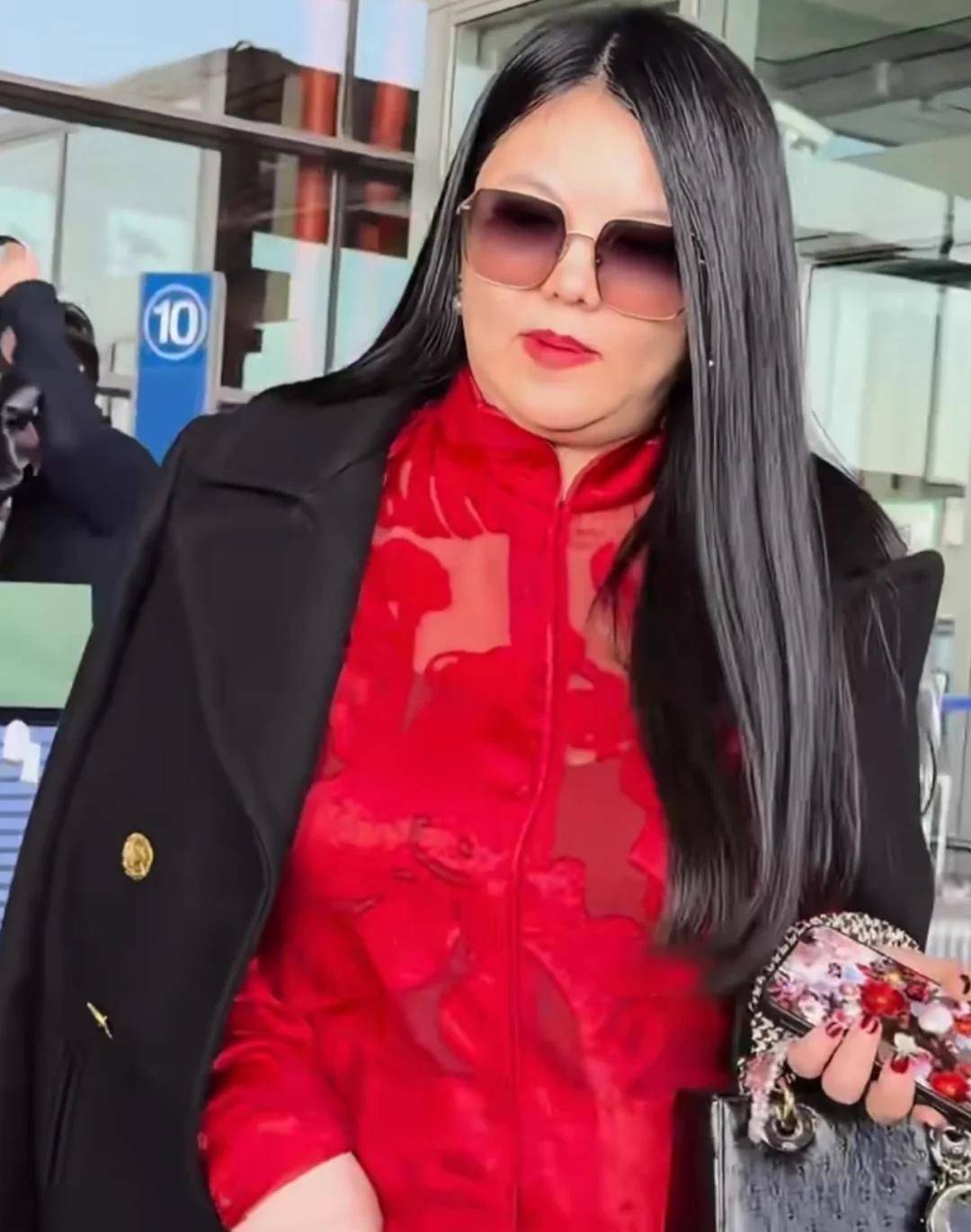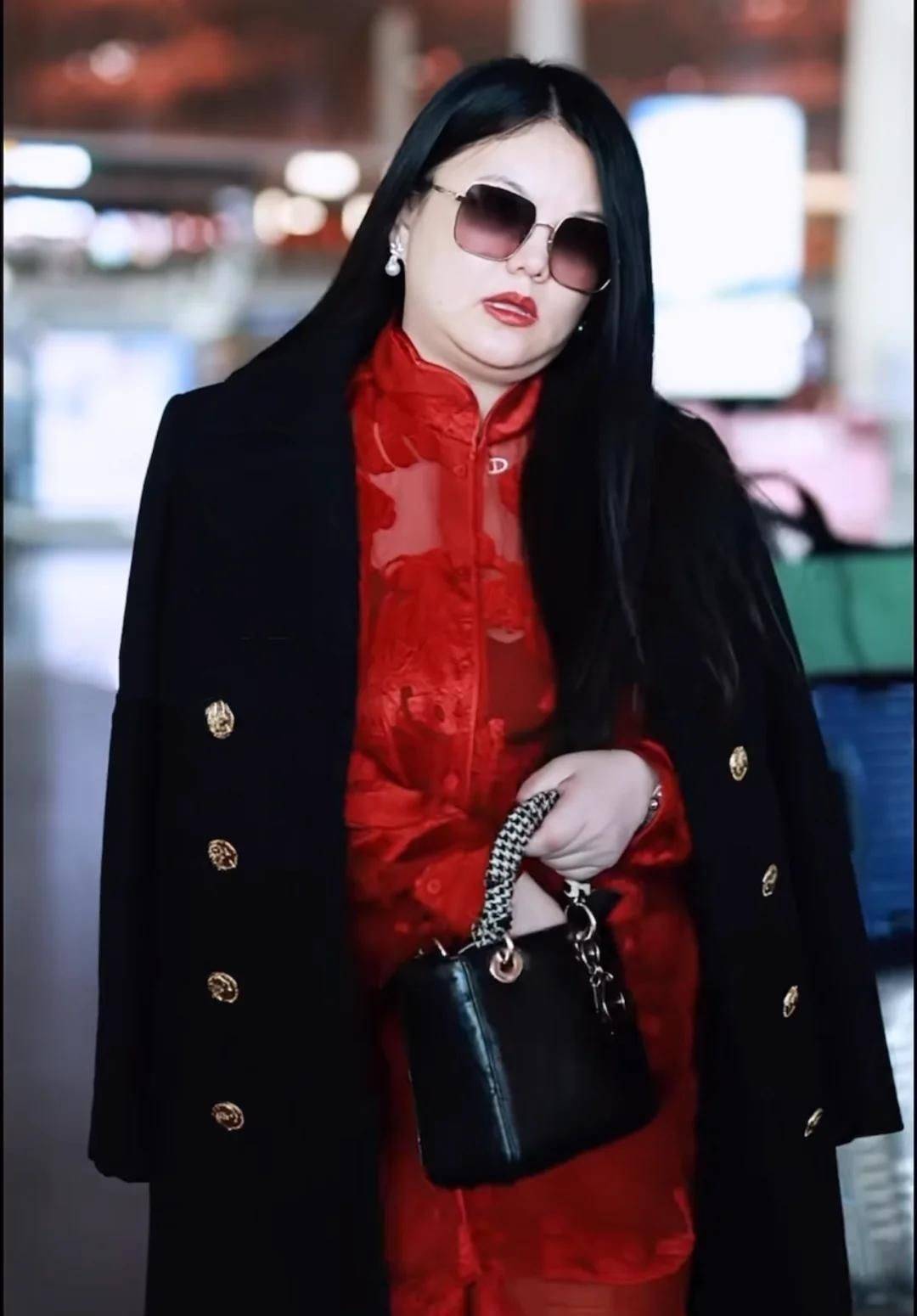 36. 即便披着外套,她的肥胖体型依然清晰可见:脸部圆润饱满,双下巴层层叠叠,颈部几乎隐没于赘肉之中,形象管理几近失控。