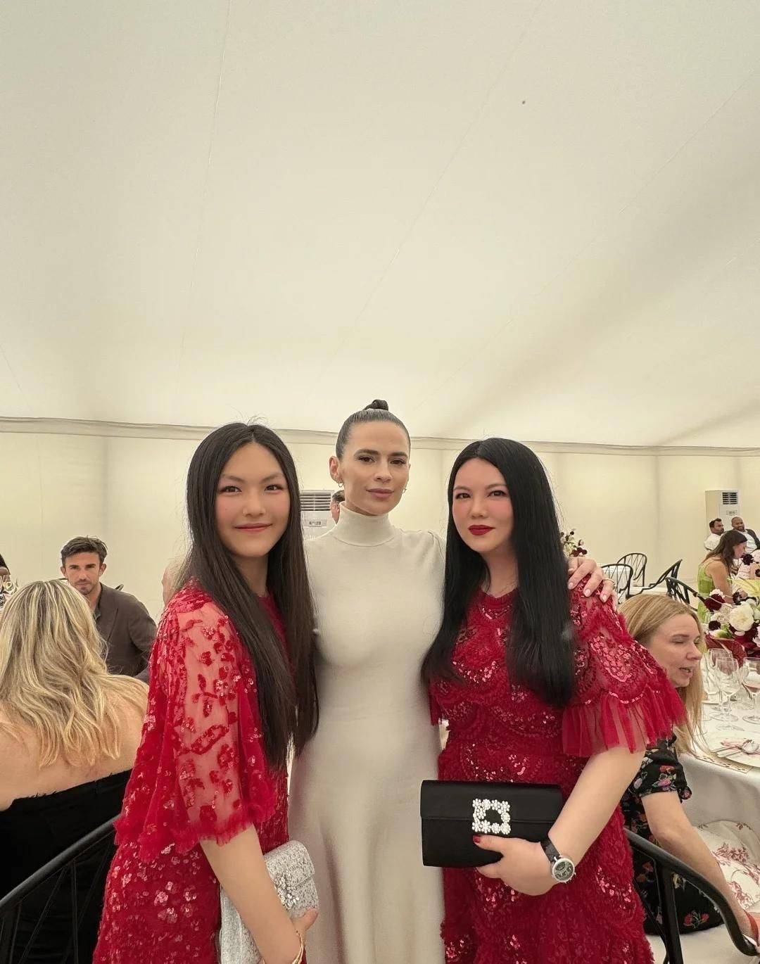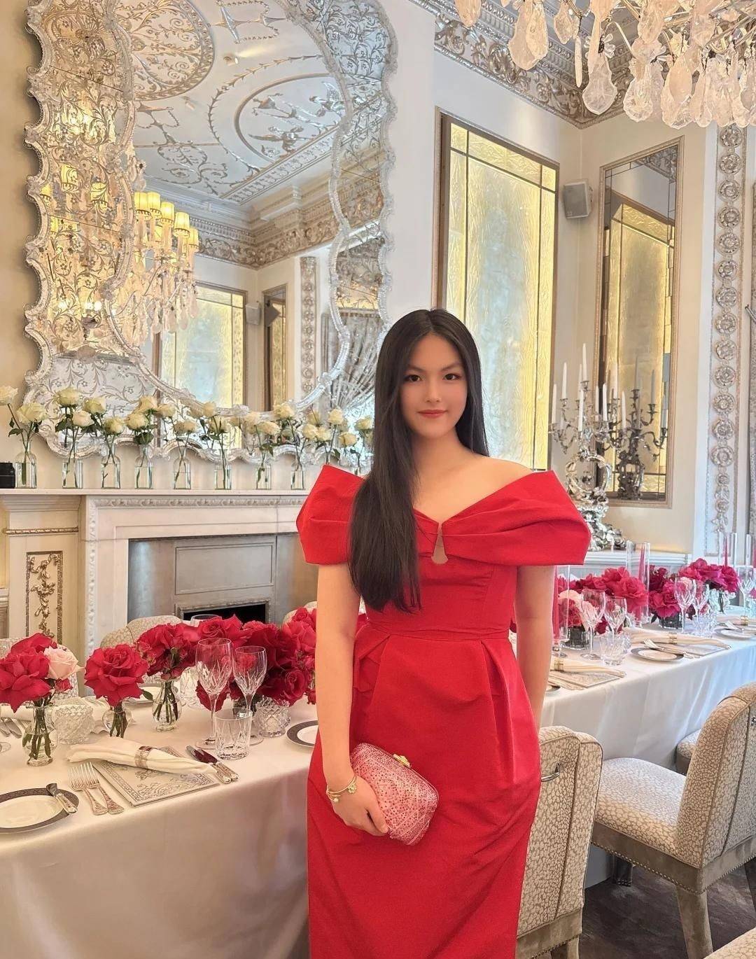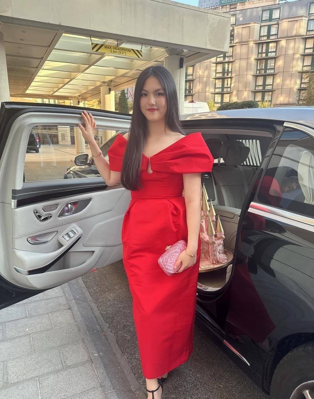15. 可惜的是,她再次选择了鲜艳的大红色连衣裙为女儿装扮,配上高跟鞋与粉色手包,整体造型宛如贵妇名媛,年龄感瞬间拉满,仿佛不是16岁少女,倒像是步入中年的女性。